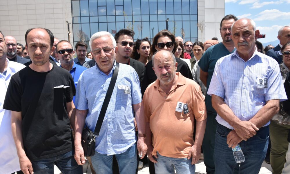 • İzmir'de, dekoratif kemerin üzerlerine devrilmesi sonucu hayatını kaybeden Mehmet Baltacı ve Güler Baltacı için anma töreni düzenlendi.Ali Rıza Baltacı (Soldan ikinci),Yaşar Baltacı (Sağdan ikinci). Fotoğraf:Kadir ÖZEN/İzmir,(DHA)