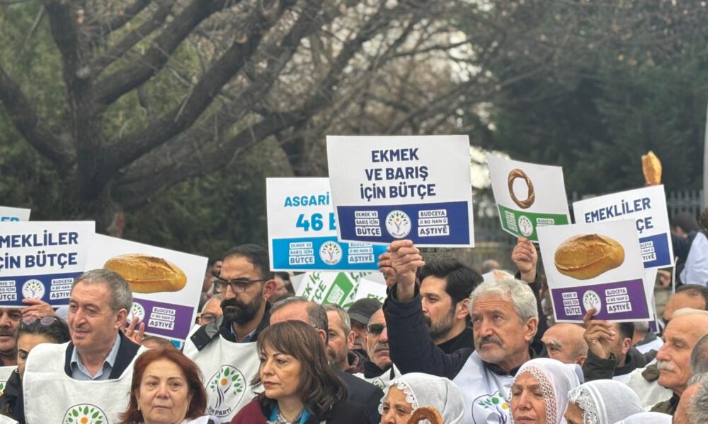 DEM Parti Eş Genel Başkanları Tülay Hatimoğulları ve Tuncer Bakırhan ile partililer, Çankaya ilçesindeki Cemal Süreya Parkında bir araya gelerek, Meclise yürüdü. Grup, ellerinde Ekmek ve barış için bütçe yazılı pankart taşıdı. TBMM Dikmen Kapısında grup adına açıklamada bulunan Hatimoğulları, “Bugün Türkiye, hem genel anlamda enflasyon hem de gıda enflasyonunda dünyada ilk 5 içerisinde yer alıyor. Bu; daha çok işsizlik, yoksulluk, hayat pahalılığı, emeklinin geçinememesi, barınamamak, faturaları ödeyememek demektir. 2026 yılı bütçesindeki en temel kaynak ne biliyor musunuz? Yurttaşın sırtına yüklenmiş olan ağır vergilerdir. Bugün sermayeden vergi almayan ve sermayeyi koruyan iktidar anlayışı, bütün vergi yükünü esnafın, işçinin, çiftçinin sırtına yüklemiştir. Bunu kabul etmek mümkün değildir. Bizler, Ekmek ve barış için bütçe demeye devam edeceğiz. Bugün bizler, Barış için bütçe derken, savaşa, özel harp yöntemine, güvenlikçi politikaları ayrılan bütçenin son bulmasını istiyoruz. Yüzyıllık bir mesele olan ve son 50 yılı savaş ve çatışmalarla geçen Kürt sorununun; Barışçıl ve demokratik çözülmesi demek, Silaha ve savaşa bütçeden pay ayrılmaması demektir. Ancak ne yazık ki 2026 yılı bütçesinde; bizler 1 yılı aşkındır barış ve demokratik toplum sürecinden bahsederken mevcut iktidar silaha yani bu anlamdaki bütün kalemlere ciddi anlamda pay ayırmış, hatta geçen yıllara göre daha fazla bütçe vermiştir. Bunu kabul etmek mümkün değildir. Biz buradan bir kere daha haykırıyoruz; Savaşa değil halka, emekçiye bütçe diyoruz” ifadelerini kullandı.