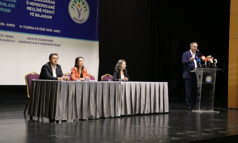 DEM Parti Eş Genel başkanları Tuncer Bakırhan ve Tülay Hatimoğulları, Yenişehir ilçesindeki Sezai Karakoç Kültür ve Kongre Merkezi’nde DEM Partili belediye eş başkanlarıyla toplantı gerçekleştirdi. Toplantıda konuşan Bakırhan, “Barış demek, yerel demokrasi, aktif yerel yönetimler, sizin alanınızın büyümesi, seçilmiş yerel iradenin yerine devlet memurlarının kayyımlarının atanmaması demektir. Mevcut bütçeden hepinizin eşit şekilde yararlanması ve İller Bankası’nın belediyelere eşit bir şekilde yaklaşması demektir. Barış demek, bazı belediyelere destek sunarken, bazılarının projelerini engellemek demek değildir. Barış en çok sizi ilgilendiriyor. Onun için bu süreci birlikte başarıya ulaştırmak için de omuz omuza her birimiz kendi alanımızda katkılarımızı sunarak devam ettireceğiz” dedi.