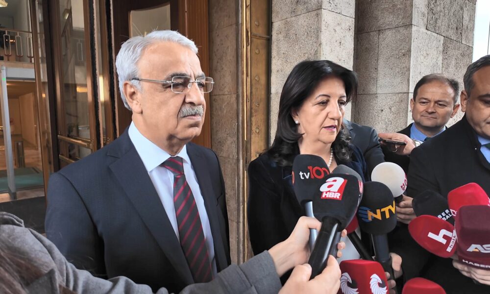DEM Parti İmralı heyetinde yer alan TBMM Başkan Vekili ve Van Milletvekili Pervin Buldan ile Şanlıurfa Milletvekili Mithat Sancar, Cumhurbaşkanı Recep Tayyip Erdoğan ile Cumhurbaşkanlığı Külliyesinde yapacakları görüşme öncesinde TBMMde basın mensuplarına açıklama yaptı. Buldan, görüşmenin önemli olduğunu belirterek, “Süreç başladığından beri bu bizim 5’inci ziyaretimiz olacak. Sayın Cumhurbaşkanı ile zaman zaman bir araya geliyoruz. En son 3,5 ay önce bir görüşme gerçekleştirmiştik. Bugün tekrar bir araya geleceğiz. Tabii sürecin geldiği belli bir aşama var. Meclis Komisyonunun rapor yazım aşamasına girdiği bir dönemde ve özellikle sürecin nasıl ilerleyeceğine dair kamuoyunda büyük bir beklenti var. Bugün Sayın Cumhurbaşkanı ile yapacağımız görüşmede 4-5 önemli gündemimiz var. Gündemimizi burada açmayacağız ancak görüşme sonunda yazılı bir açıklama yaparak sizleri ve kamuoyunu bilgilendireceğiz” dedi.
