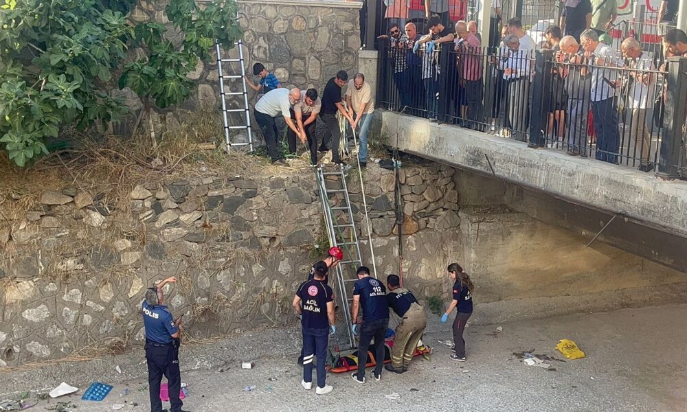 Dengesini kaybedip, 3 metre yükseklikten dereye düşen kadın yaralandı