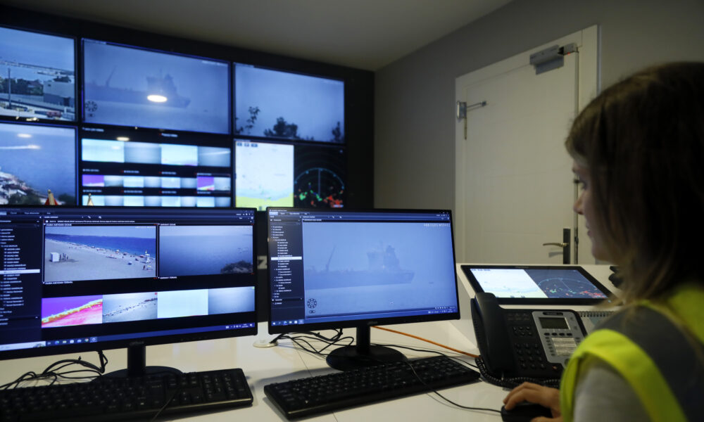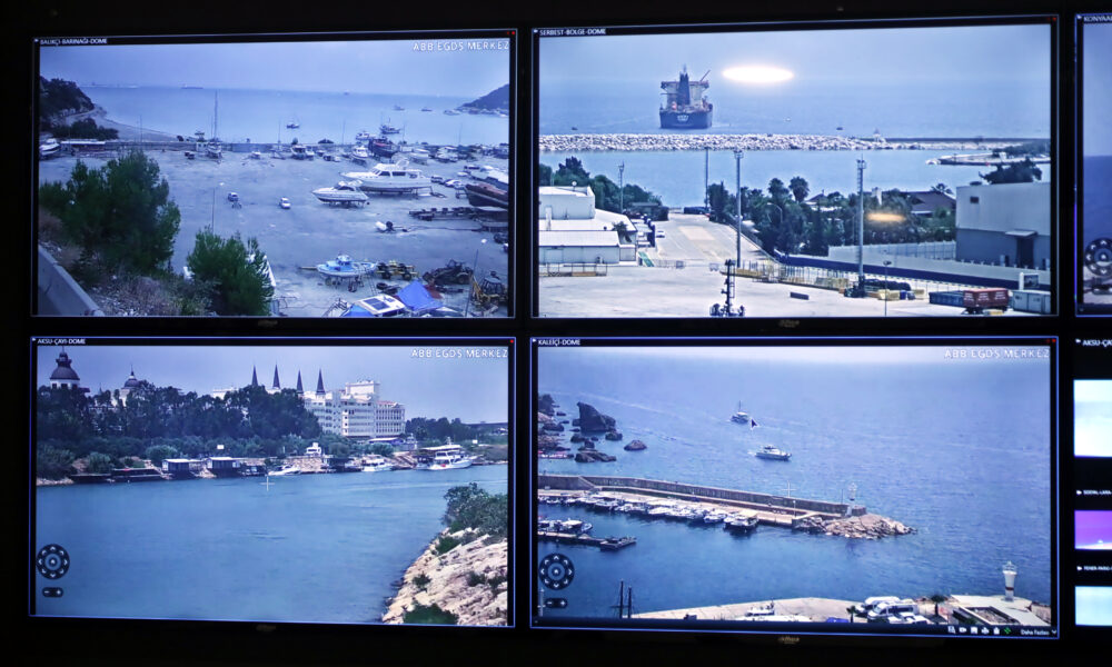 • Antalya'da 2022 yılında kıyılarda zift kirliliği görülmesi ve kaynağının tespit edilememesinin ardından hayata geçirilen elektronik gemi denetim sistemi, denizdeki hareketliliği 22 kamerayla 24 saat izliyor. Fotoğraf: Alparslan ÇINAR / Antalya, (DHA)
