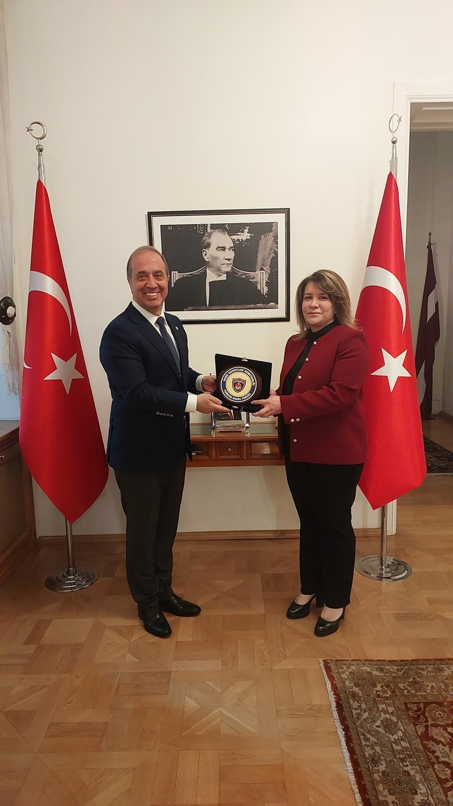 Deniz Kuvvetleri Komutanı Oramiral Ercüment Tatlıoğlu ve beraberindeki heyet, Letonyanın başkenti Rigadaki Türkiye Büyükelçiliğini ve kuzeyde bulunan Letonya Cesis Türk Şehitliği’ni ziyaret etti.