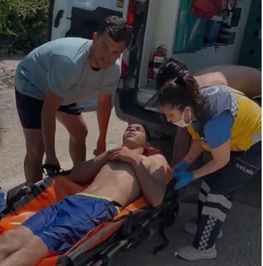 Olay, öğle saatlerinde, Yumurtalık açıklarında meydana geldi. Deniz bisikletiyle gezintiye çıkan kişiler, bir gencin suda çırpındığını gördü. Baygınlık geçiren kişiyi, deniz bisikletindekiler kurtardı. Sağlık ekiplerine haber veren çevredekiler, genci kıyıya götürdü. Yaşananlar, arkadaş grubundaki kişi tarafından cep telefonuyla görüntülendi. İsmi öğrenilemeyen genç, sağlık ekiplerinin ilk müdahalesinin ardından ambulansla hastaneye kaldırıldı.