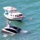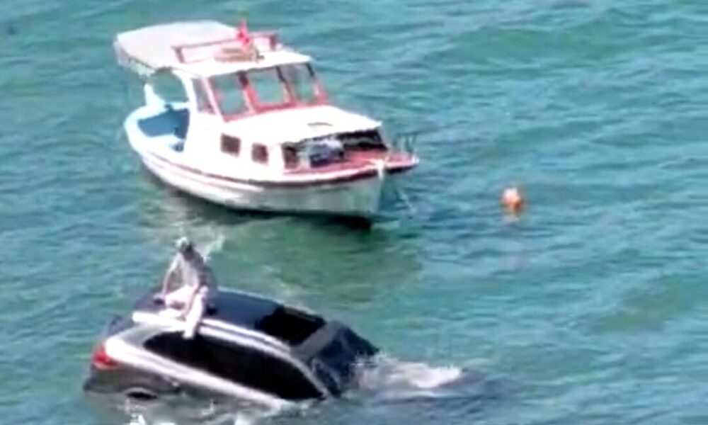Denize uçan otomobilinin üzerinde oturup yardım bekledi