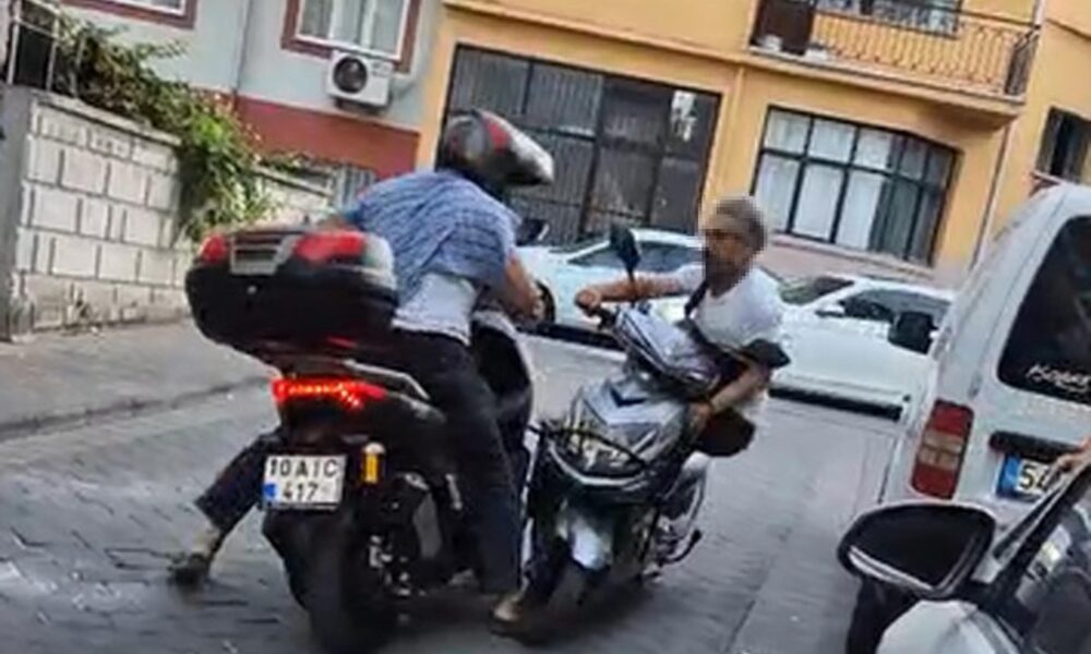 Kavga anı ise çevrede bulunan bir vatandaşın cep telefonu kamerasıyla kaydedildi. Görüntülerde, tartışmanın ardından B.K.’nın motosikletiyle, L.K.’nın motosikletine çarptığı ve ardından çıkan kavga yer aldı.