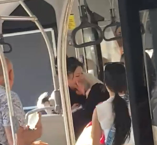 • Denizli'nin Merkezefendi ilçesinde Büyükşehir Belediyesi'nin yolcu otobüsünde iki kadın arasında çıkan kavga, başka bir yolcu tarafından cep telefonuyla kaydedildi. Fotoğraf:Denizli,(DHA)