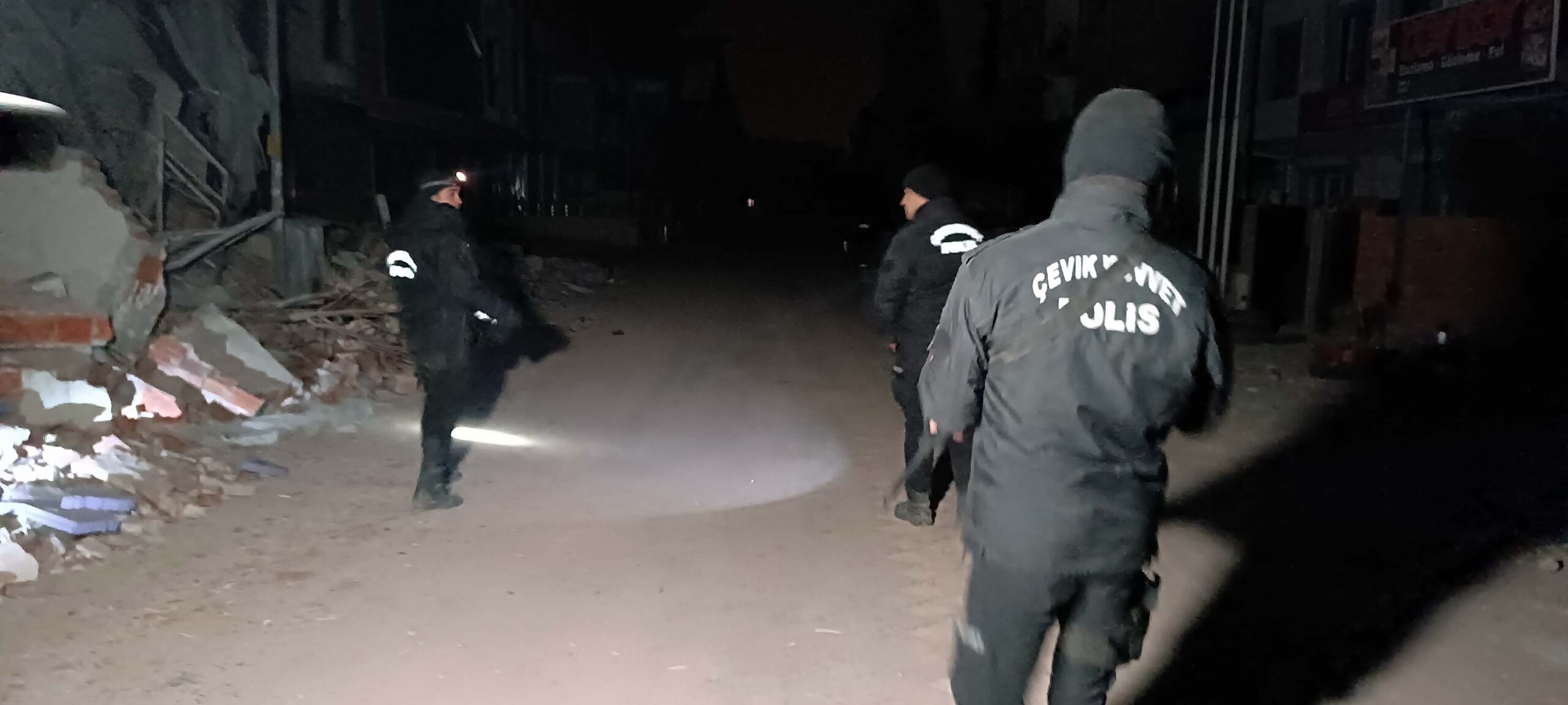 KAHRAMANMARAŞ’ta arama-kurtarma çalışmaları sürerken, polis ekipleri de hırsızlık olaylarına karşı teyakkuza geçti. Ellerine fener alıp, sokak sokak gezen polis, depremzedelerin mallarının çalınmaması için uğraşıyor.