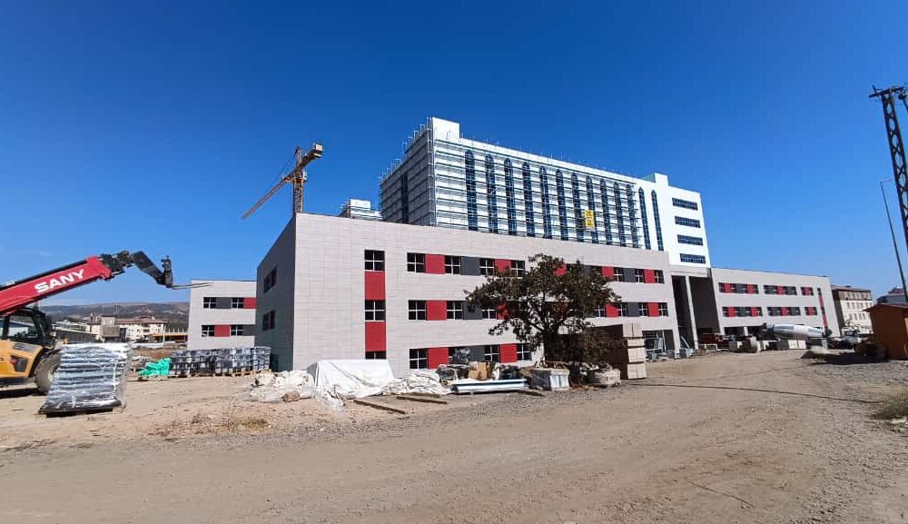 Bingöl’de, 33 dönümlük alan üzerine kurulan 500 yatak kapasiteli yeni devlet hastanesinin inşaatı devam ediyor. Toplam 102 bin metrekare kapalı alana sahip olacak hastanede, 49 yoğun bakım ünitesi, 132 muayene odası, 13 ameliyathane ve 495 araçlık kapalı otopark bulunacak. Kentin deprem riski göz önünde bulundurularak, yapının güvenliği için ‘fore kazık’, ‘sismik izolatör’ ve ‘viskoz sönümleyici damper’ sistemleri bir arada uygulanıyor. Hastanenin tamamlanmasıyla birlikte Bingöl, hem güvenli hem de modern bir sağlık tesisine kavuşmuş olacak. Hastanenin 2026 yılında hizmete girmesi hedefleniyor.