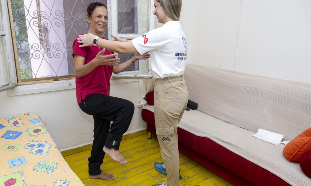 Büyükşehir Belediyesi Sağlık İşleri Dairesi Başkanlığı’na bağlı Evde Sağlık Hizmetleri Birimi’nde görevli fizyoterapist Sevgi Dilan Dinsever, “Meryem teyze, Hatay’da enkaz altında kalmış. Daha sonra tedavi için Mersin’e getirilmiş. Mersin’de 2,5 aylık tedavi sonucunda, fizik tedavi için Belediyemize başvuru yaptı. Biz ilk geldiğimizde Meryem teyzenin vücudunda kırıklar mevcuttu, çok ağrısı vardı ve yürüyemeyecek durumdaydı. Öncelikle ağrısını dindirmeye yönelik uygulamalar yaptık. Daha sonra kısıtlı eklem hareketleri ve egzersizle kaslarını güçlendirdik. Yavaş yavaş yürümeye başladı. Şu an bağımsız bir şekilde, kendi ihtiyaçlarını kendisi görebiliyor. Hem ev içerisinde hem ev dışında tek başına hareket edebiliyor. Bu, Meryem teyzenin hayata tekrar tutunmak için gösterdiği azim ve istikrar sayesinde oldu” dedi.
