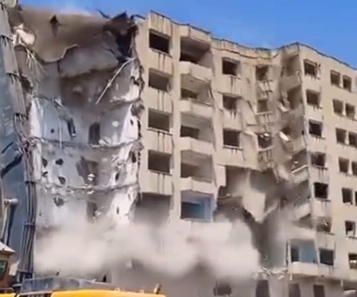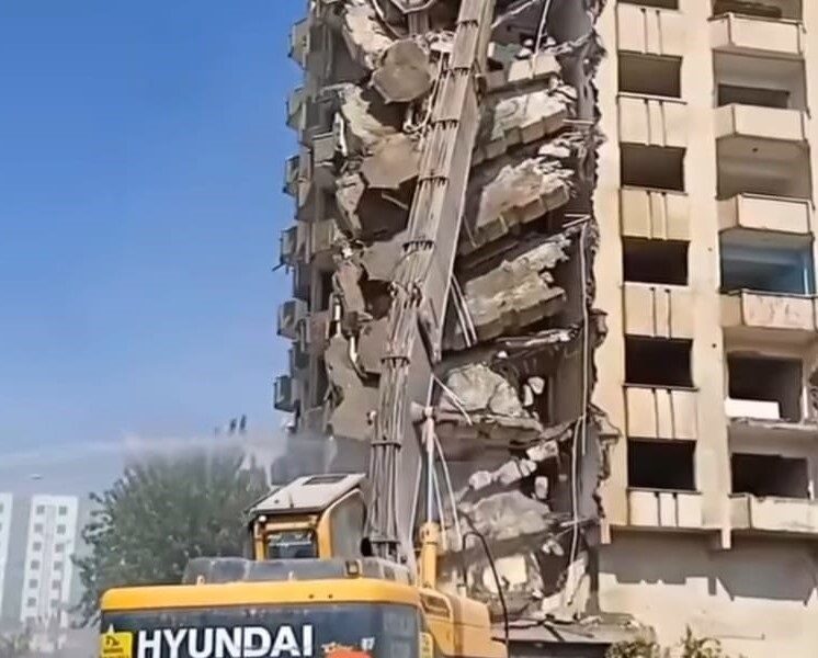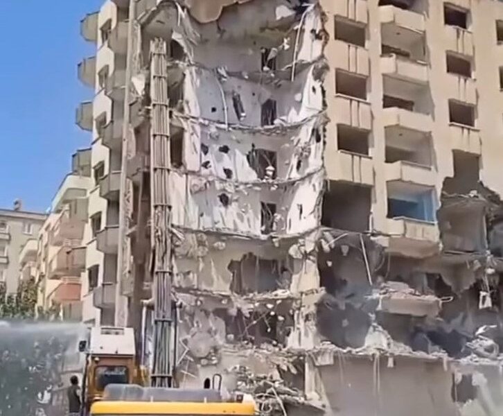 Kahramanmaraş merkezli 6 Şubat 2023’teki depremlerde ağır hasar aldığı için tahliye edilen Bağlar ilçesindeki 7 katlı bloklu bina, bugün kontrollü yıkım sırasında çöktü. Çökmeyle çevreyi toz bulutu kaplarken, çevredekiler hızla bölgede uzaklaştı. O anlar ise cep telefonu kamerasıyla kayda alındı.