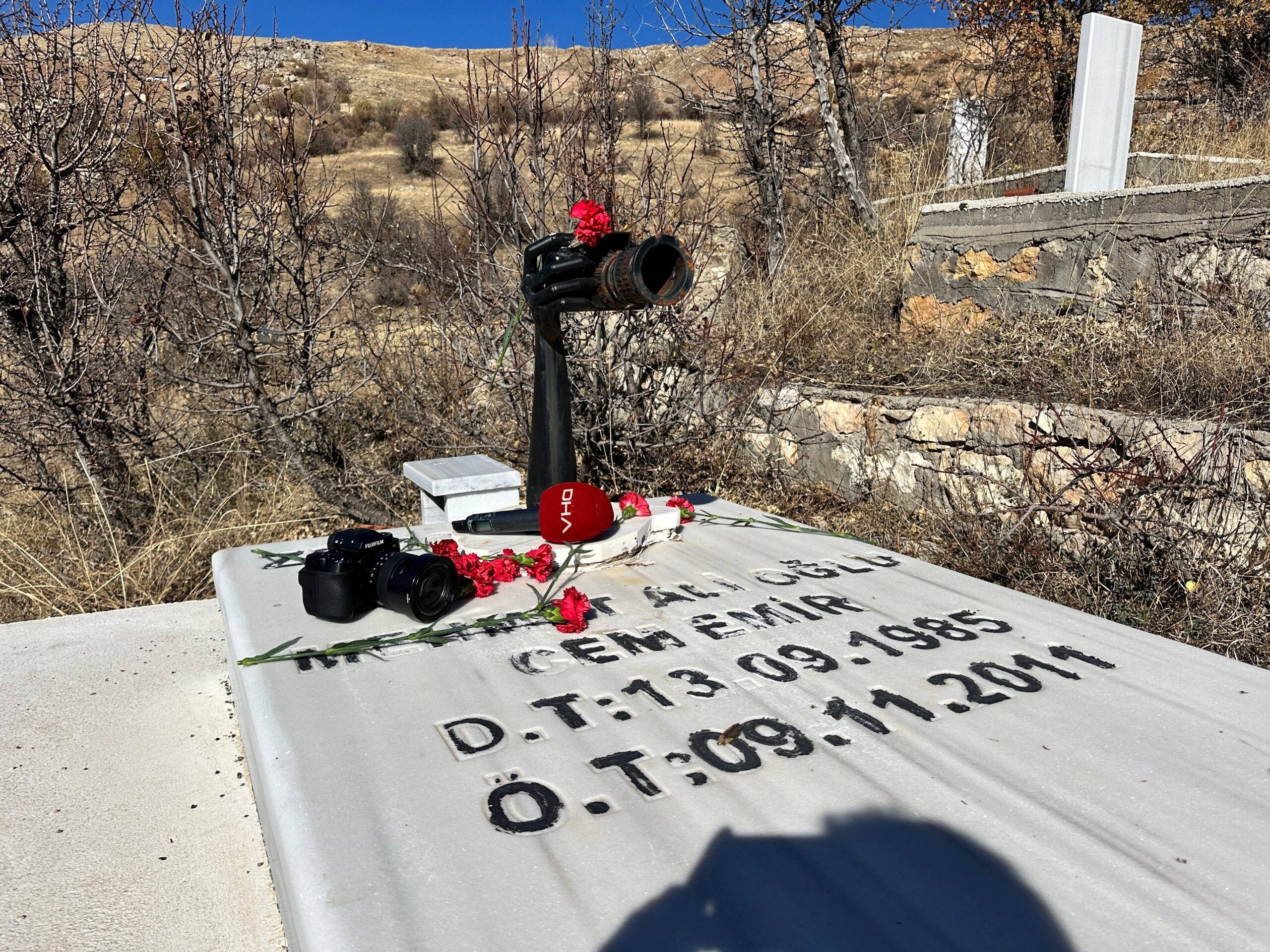 Depremde hayatını kaybeden DHA muhabiri Cem Emir, kabri başında anıldı