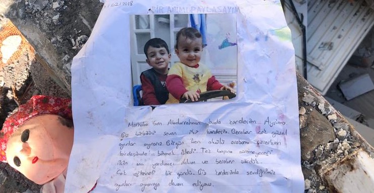ADIYAMAN’da, Yunus Emre Mahallesi’nde yıkılan apartmanın enkazında Osman ve Müzeyyen Toprak çifti ile çocukları Abdurrahman (11) ve Aysima (7) kaldı. Çift, enkazdan yaralı çıkarılırken, Abdurrahman ve Aysima kardeşler ise hayatını kaybetti. Enkazdaki arama-kurtarma çalışmalarında, kardeşlerin anı defterinden de bir sayfa bulundu. Abdurrahman’ın, Aysima ile ilgili 2018’de yazdığı, ‘Biz birbirimizi seven iki kardeşiz’ diye başlayan notu, görenleri duygulandırdı.