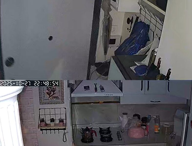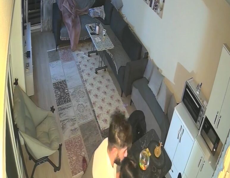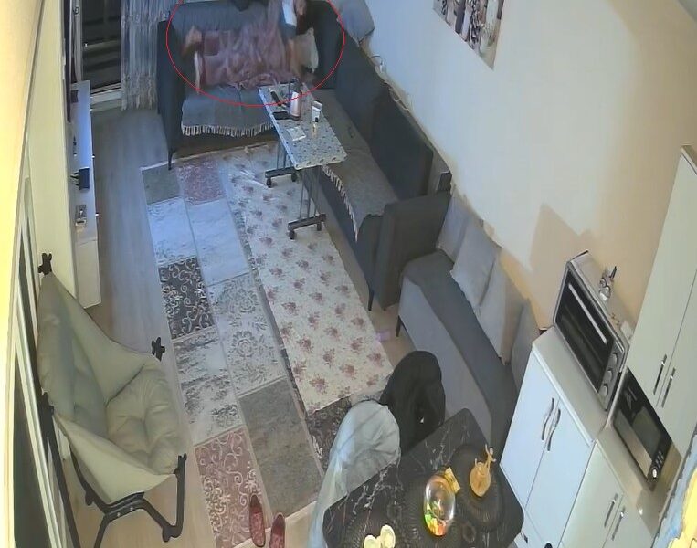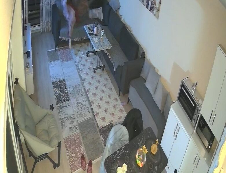 Evin diğer tarafındaki güvenlik kamerası görüntülerine de sarsıntı net bir şekilde yansıdı.