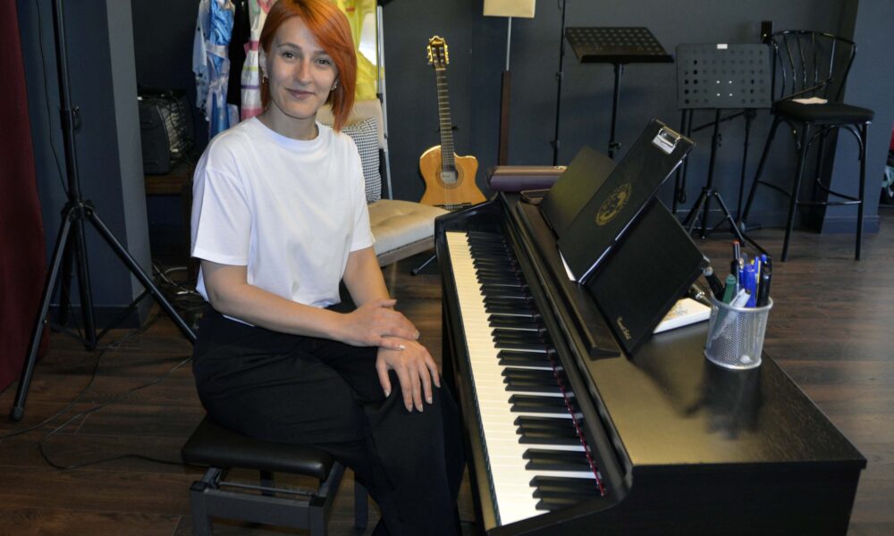 • Hatay’lı depremzede müzik eğitmeni Cansu Daloğlu Aytaç yerleştiği Mersin'de hem yeni hayatını kurdu hem de açtığı müzik okuluyla çocukların ve kadınların depremin izlerini silmesi için çalışıyor. Fotoğraf: Soner AYDIN/Mersin, (DHA)
