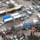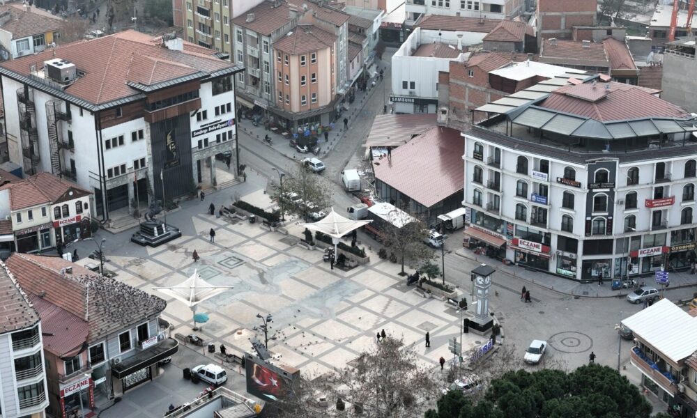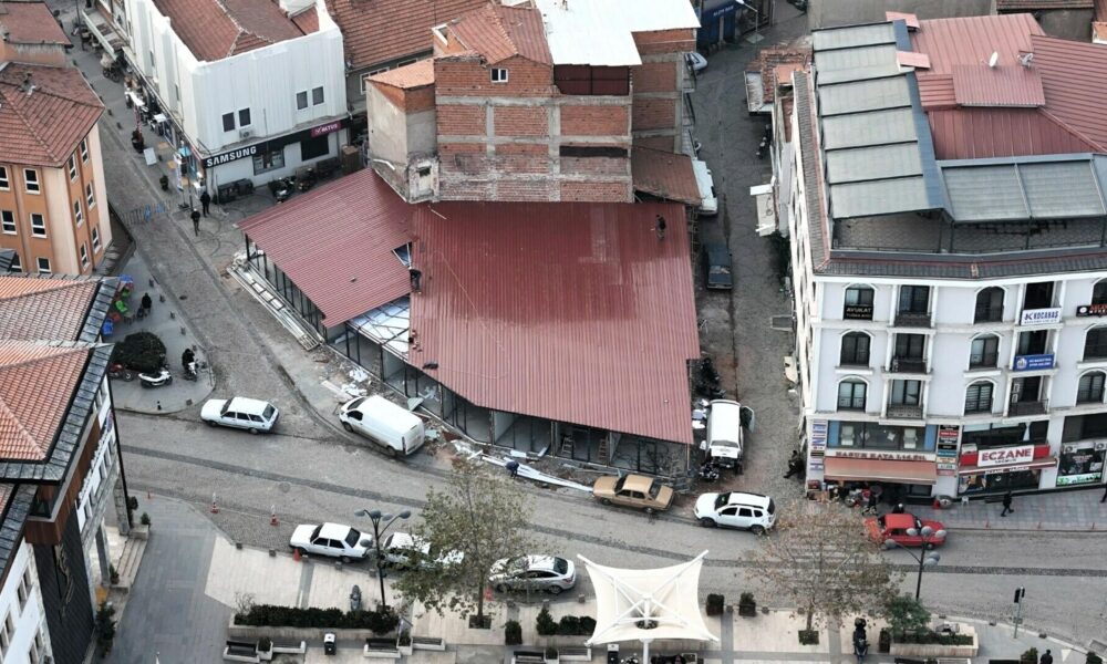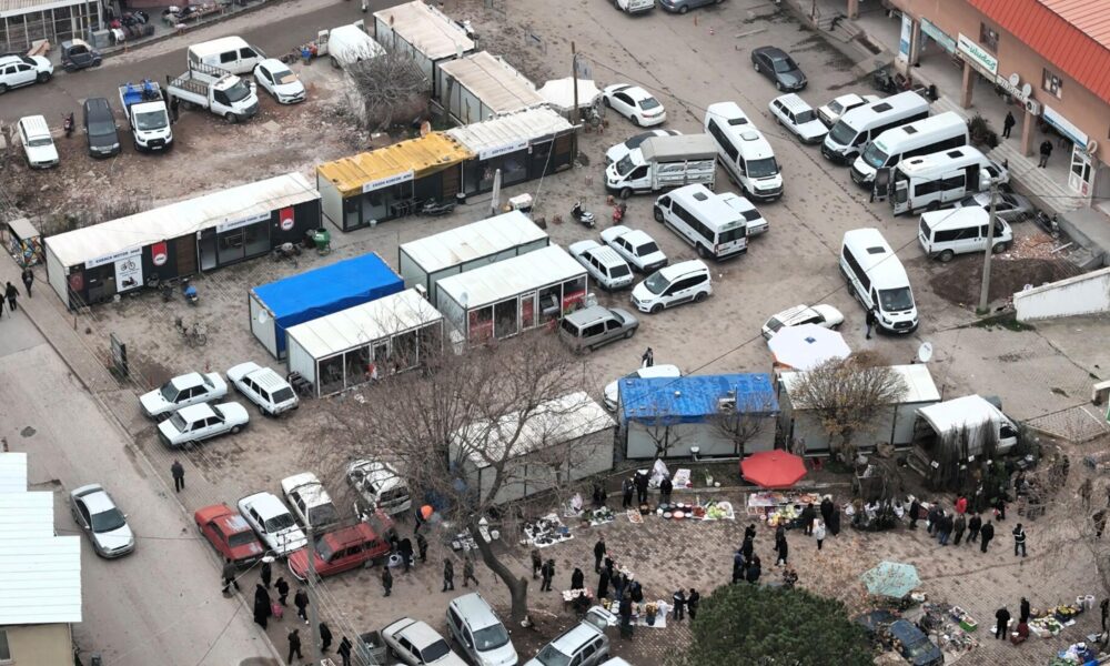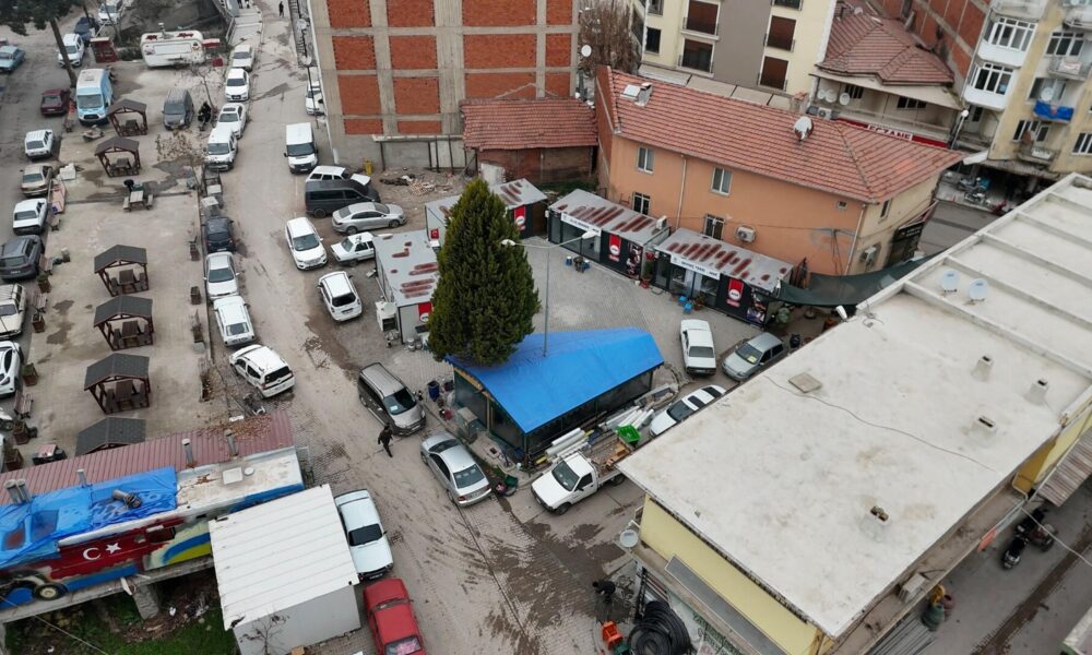 Depremin vurduğu Sındırgı’da kurulan konteyner dükkanlar, dronla görüntülendi