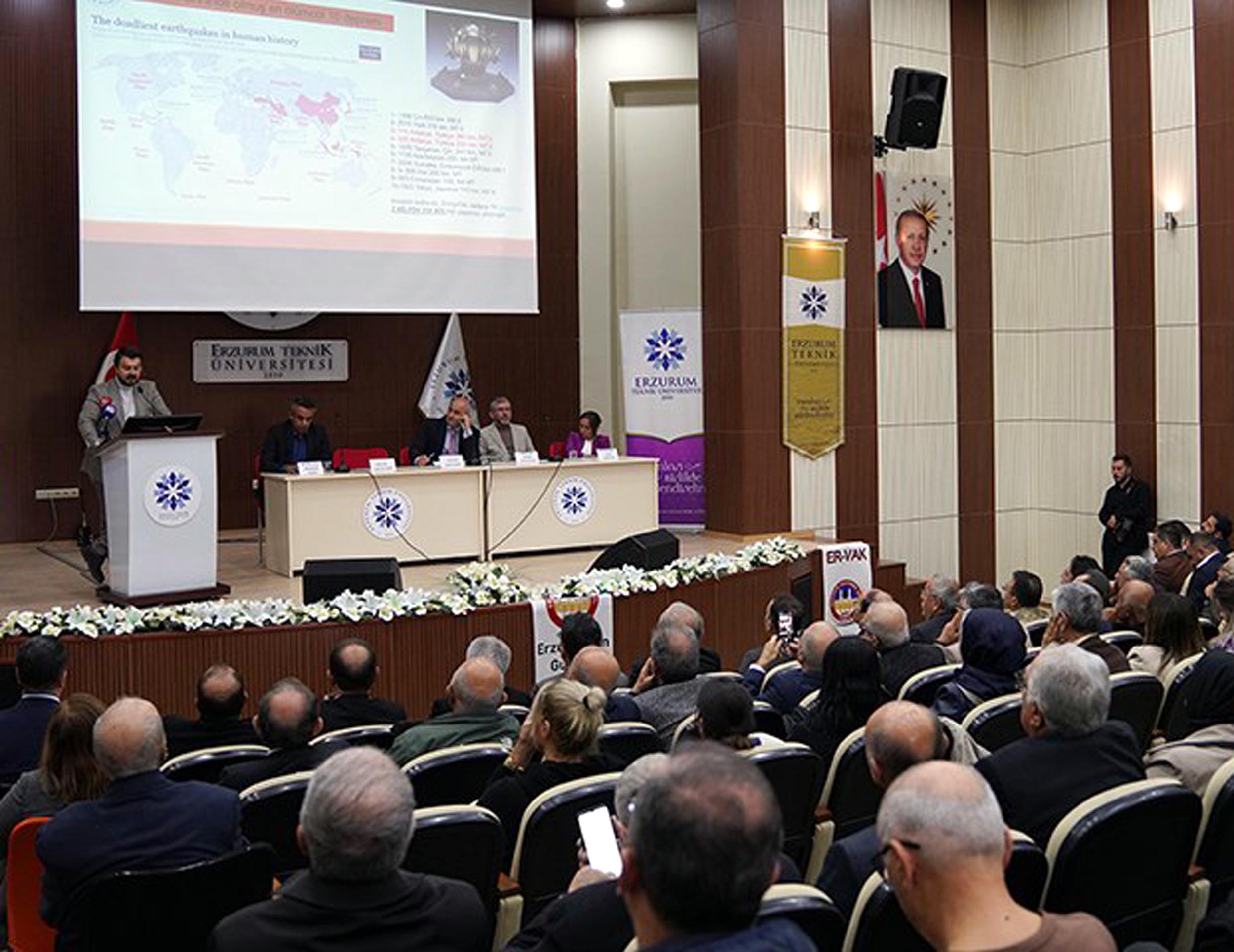 • Erzurum Kalkınma Vakfı (ERVAK) ile Erzurum Teknik Üniversitesi (ETÜ) tarafından 'Deprem gerçeği ve Erzurum' konulu panel düzenlendi. Fotoğraf: Salih TEKİN / Erzurum,(DHA)