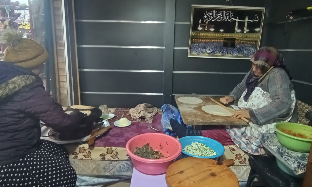 İslahiye’de hepsi ev kadını olan 3 çocuk annesi Betül Murat (41), 3 çocuk annesi Emine Gürocak (59) ve 2 çocuk annesi Öznur Murat (33), 6 Şubat 2023 depremlerinin ardından ev ekonomisine katkı sağlamak için bir araya gelerek 20 metrekarelik dükkan açtı. Kadınlar, bölgenin geleneksel yiyeceklerinden olan börek ve sıkma yapıp, satmaya başladı.