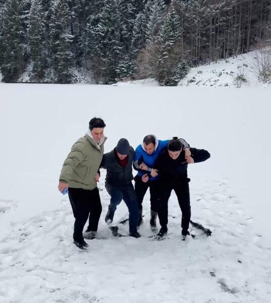 Yaşadıkları olayı anlatan gruptan Avukat Tarık Buğra Kaycı, “O gün arkadaşlarımızla Uzungöl’e gezi amacıyla gittik. Çok güzel bir kar yağışı bizi karşıladı. Hep birlikte olunca, erkeklerin bir araya geldiği zaman yaptığı çılgınlıklardan birini yapalım diye düşündük. Göl tamamen buzla kaplanmıştı. Az çok buzun kırılacağını da tahmin ettik. Kıyıdan uzakta değiliz diye tahmin ettik. Buz kütlesinin altının o kadar derin olacağını da tahmin etmedik. ‘Buz kırılır en fazla biraz suyun içine girmiş oluruz’ dedik. Arkadaşımız da bize video çekiyordu. Buz kırıldı, boylu boyunca suya batmış olduk. Paylaştığımız videonun bu kadar teveccüh göreceğini de tahmin etmemiştik. Güzel bir anı oldu, insanlar da güldü. Hemen arabaya gidip kurulandık ve eve döndük. Kimseye bir şey olmadı” dedi.