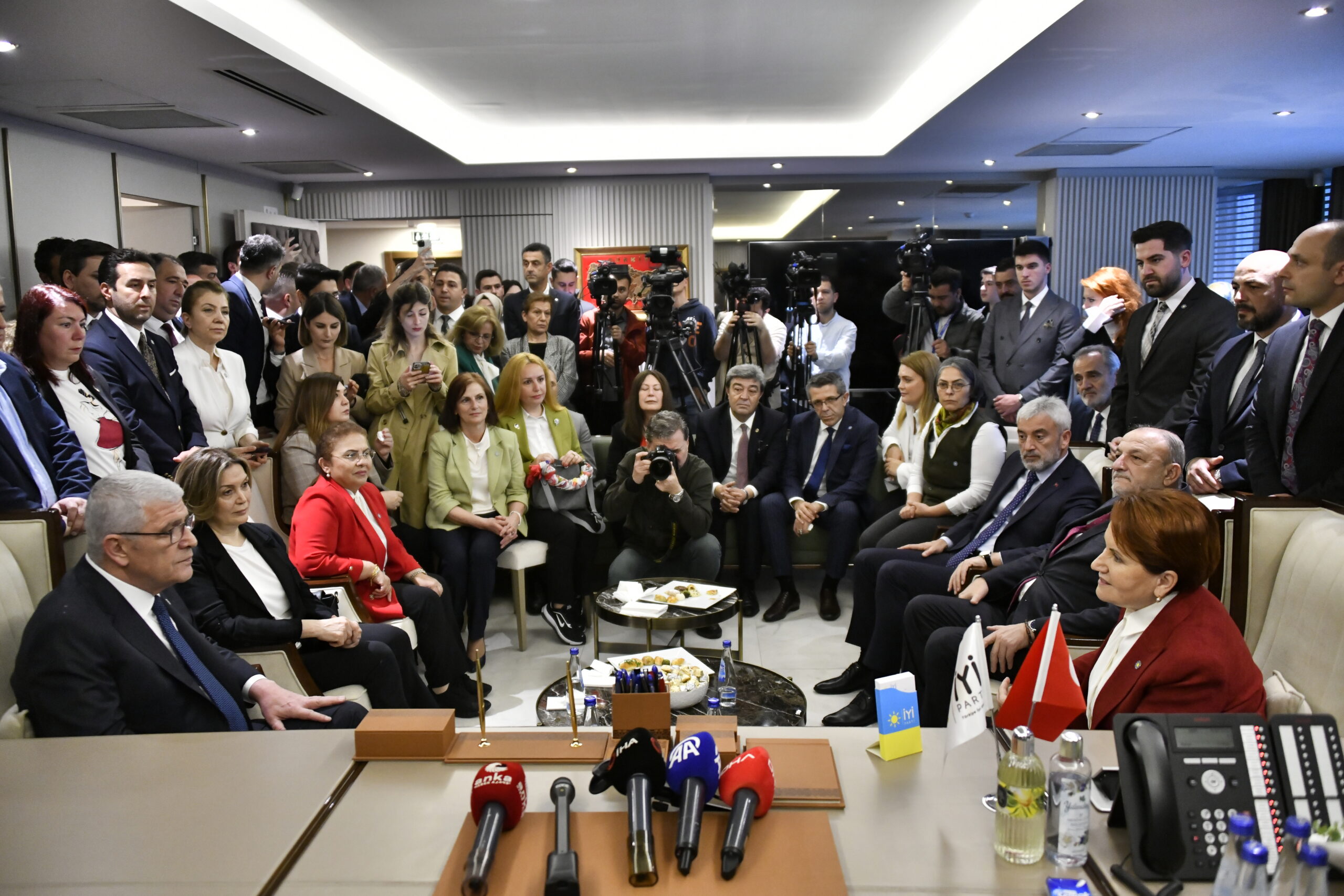 Akşener ise Türkiyedeki tüm siyasi yapıların genel başkanlar üzerinden yürüdüğünü vurgulayarak, “Biz halbuki partimizi kurarken biz olduk; çünkü hepimizin birbirine ihtiyacı vardı. Bir kişinin yapacağı bir iş değildi. Birbirine güvenen, seven, saygı duyan, birbirinin gücünden, imkanlarından onları birbirine bağlayan ve voltran oluşturan bir hareket bizim partimizin çıkış alanı. Çok ilginç bir kurultay oldu. Herkesin herkese hakaret ettiği sistemlerden, yani onu biliyor Türkiyede izleyenler ama biz kurultayımızda bir ilki başardık. Dolasıyla bütün bunlara baktığınız zaman aslında kurumsallığı oluşmuş bir siyasi partiyiz. İnşallah bundan sonraki fasılda iktidarın yolu açılacak. Ben Sayın Müsavat Dervişoğlu Genel Başkanımıza bir sandalye devretmiyorum. Bir birikimi de devrediyorum, bu birikim benim değil hepimizin ortak birikimi. Türkiyede bu dostluk ilişkisini bile didikleyen bir psikoloji var. İnsanlar birbirine karşı düşmanlığa o kadar alışmış ki maalesef dostluğun ne olduğunu unutmuş. İnşallah bizim ortaya koyduğumuz dostluk içerisindeki değişim Türkiye’ye örnek olacak. Gençlere örnek olacak ve kutuplaşan, birbirine düşman haline getirilen bu ülkenin fertlerine, milletimize rahatlama açısından örnek olacak. O nedenle ben çok mutluyum. Sayın Genel Başkanımız söyledi; o bayrak hepimizin emeği, teri olan bir bayrak. Onu, benden boyu uzun zaten dolayısıyla daha yükseğe çıkaracak” ifadelerini kullandı.