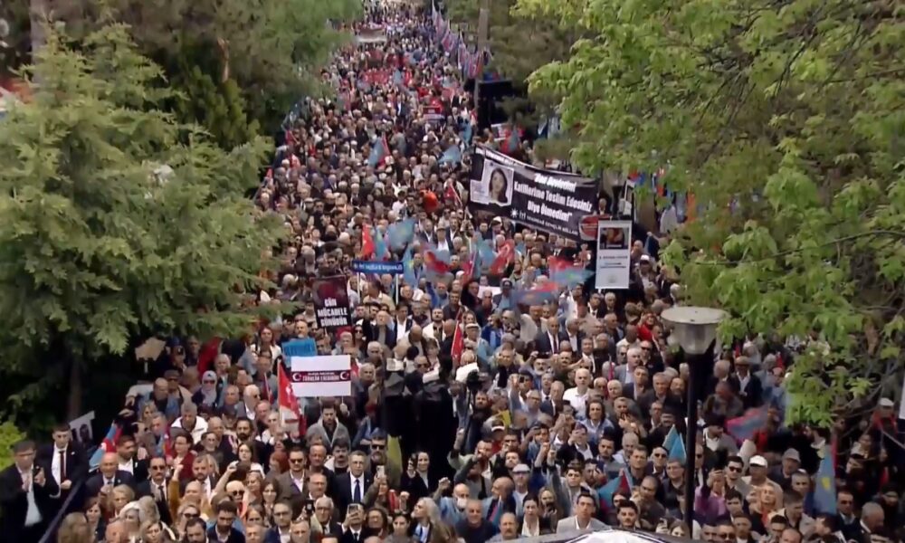 Dervişoğlu, PKK terör örgütü ile barış yapıldığını ve bununla birlikte Cumhuriyet’in yıkılmak istendiğini söyledi. Dervişoğlu, bunlar yaşanırken vatandaşların demokrasinin geleceğine inanmayacağını vurgulayarak, “Gençlerimiz teğmen olup ordudan atılacak, itiraz edip coplanacak, öğretmen olup atanamayacak, iş bulamayıp göç edecek, yoksulluktan evlenemeyecek, verdiği oy yok sayılacak, aldığı diploma iptal olacak, bağıracak duyulmayacak, ağlayacak görülmeyecek, yaşarken ölüme mahkum edilecek. Kendi vatanında yabancı olacak, kendi toprağında ekmeğe muhtaç kalacak, yarınlardan umut, devletinden güven, iktidardan kabul görmeyecek ve biz de durup susacağız öyle mi? Biz sormayacağız ve biz barışa karşı olacağız, devletiyle savaşanlar bize hukuk diyecek, Cumhuriyeti yıkanlar bize demokrasi öğretecek, teröristle kol kola gezenler bize eşitlikten bahsedecek öyle mi?