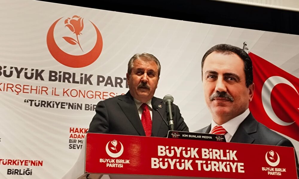 BBP Genel Başkanı Mustafa Destici, partisinin il kongresine katılmak üzere Kırşehir’e geldi. Neşet Ertaş Kültür Merkezi Aşık Said Salonu’nda düzenlenen kongreye, Destici’nin yanı sıra partililer ve vatandaşlar katıldı. Bu vatanın şehitlerin kanıyla alındığını söyleyen BBP Lideri Mustafa Destici, “Azerbaycan’dan kalktıktan sonra Gürcistan sınırı girişinde düşen askeri nakliye uçağımızda hayatını kaybeden 20 kahramanımıza Allah’tan rahmet diliyorum. Ruhları şad, mekanları cennet olsun. Ailelerine, yakınlarına ve milletimize başsağlığı diliyorum. Bu millet bugüne kadar hainlerin taleplerine izin vermedi. Bundan sonra da vermeyecektir. Bu toprakları birilerinden bağışla almadık, birilerine hibe etmedik, evrakla satın almadık. Bu vatanı şehitlerimizin kanıyla aldık. 1071’den 1923’e kadar milyonlarca şehit verdik. Atalarımız bize hür ve bağımsız bir vatan bıraktı, bizim görevimiz bu devleti korumaktır” diye konuştu.