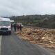 Devrilen ahşap yüklü TIR’ın şoförü yaralandı