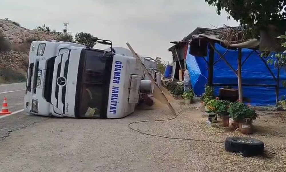 Kaza, sabah saatlerinde Tarsus-Çamlıyayla kara yolu Meşelik mevkisinde meydana geldi. Kemal A.’nın kontrolünü yitirdiği 01 ANC 005 plakalı yem yüklü kamyon, yol kenarında sıkma satışı yapılan çadırın önüne devrildi. Kazada, kamyon şoförü Kemal A. yaralandı. Çadırda bulunanlar panik yaşarken, çevredekilerin ihbarı üzerine kaza yerine sağlık ekipleri sevk edildi. Yaralı ambulansla hastaneye kaldırdı.