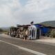 Devrilen kamyon, sıkmacıya ramak kala durdu