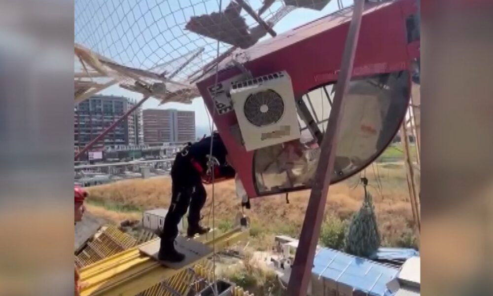 Devrilen kule vinçin kabininde mahsur kalan operatörün kurtarılma anı kamerada