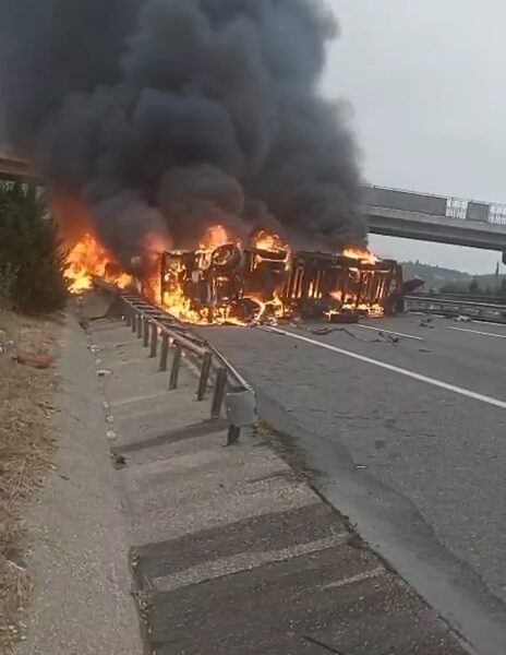 Kaza, akşam saatlerinde Tarsus-Pozantı Otoyolu Damlama mevkisinde meydana geldi. Y.A. yönetimindeki 38 AGV 644 plakalı elyaf yüklü TIR, refüjdeki bariyerlere çarpıp, devrildikten sonra alev aldı. Sürücünün yara almadan kurtulduğu kazada TIR, yanmaya başladı. Çevredekilerin ihbarı üzerine olay yerine itfaiye ekipleri sevk edildi. Kaza ve yangın nedeniyle otoyol, trafiğe kapatıldı. İtfaiye ekiplerinin müdahalesiyle yangın, yaklaşık yarım saatte söndürüldü. Yangında kullanılmayacak hale gelen TIRın yoldan kaldırılmasının ardından otoyol yeniden trafiğe açıldı.