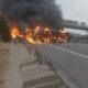 Devrilen TIR, alev alev yandı