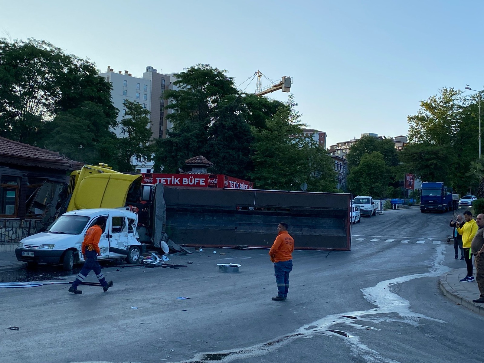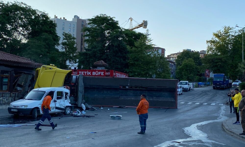 Devrilen TIR, parktaki eve çarptı; şoför yaralı