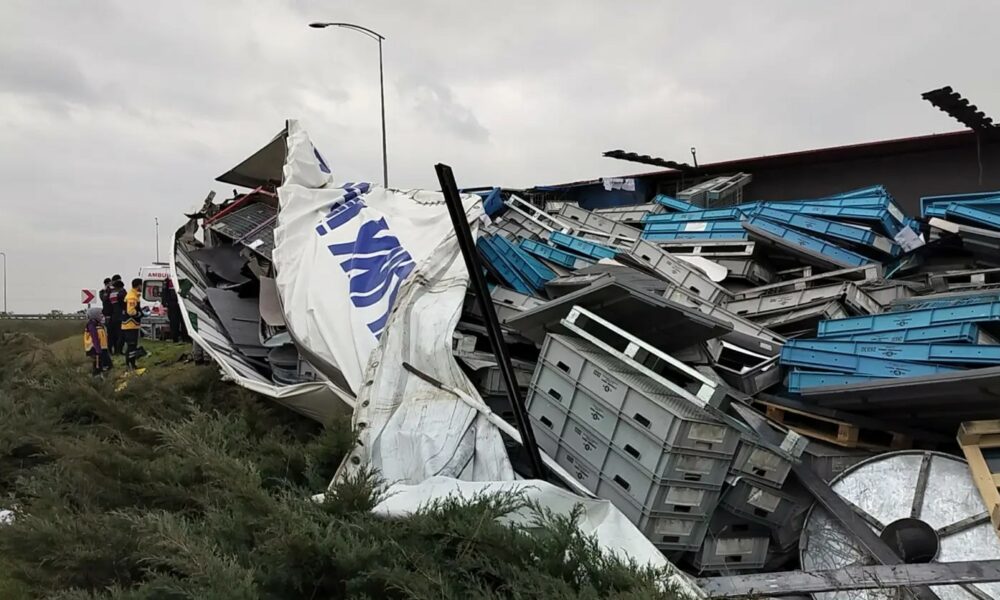 Devrilen TIR’da sıkışan sürücü yaralandı