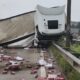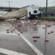 Devrilen TIR’ın dorsesinde yüklü içki kutuları yola saçıldı