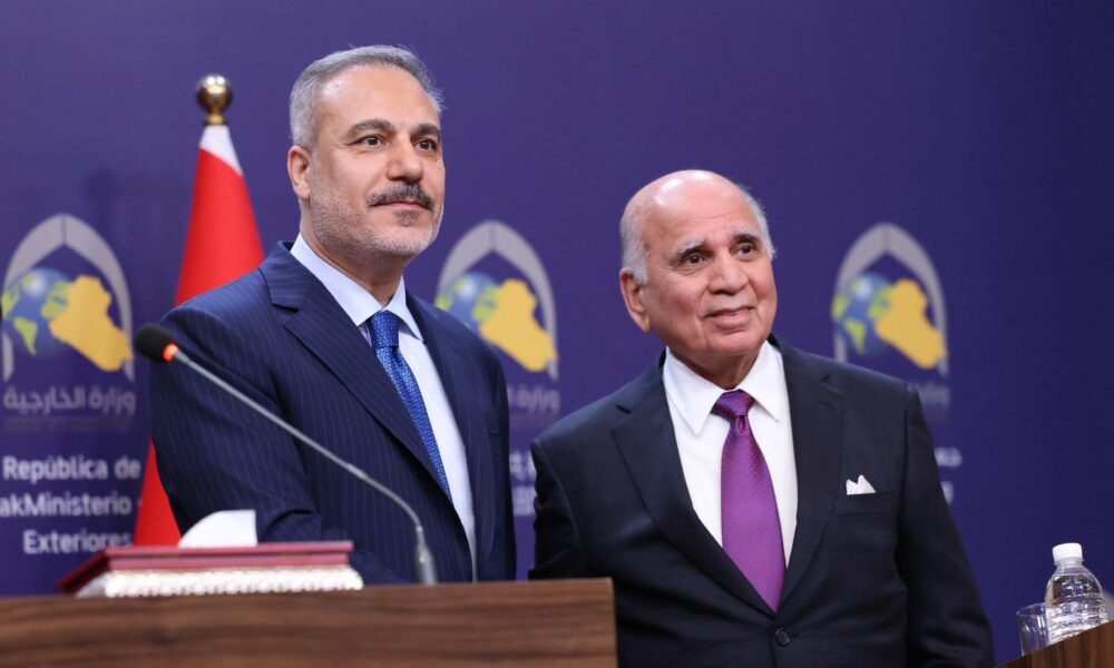 Dışişleri Bakanı Hakan Fidan, Bağdat’ta Irak Başbakan Yardımcısı ve Dışişleri Bakanı Fuad Hüseyin ile ortak basın toplantısı düzenledi. Bakan Fidan, kısa bir aradan sonra tekrar Bağdat’ta olmaktan duyduğu memnuniyeti ifade ederek sözlerine başladı. Bağdat ile Ankara arasında çok yoğun bir iş birliği mesaisi olduğunu belirten Bakan Fidan, “Her konuda kurumlarımız yoğun bir şekilde iş birliği yapmakta, meseleleri çok profesyonel bir şekilde ele almakta ve çözüm odaklı çalışmaktalar. Malumunuz, 2024 yılında Cumhurbaşkanımızın yaptığı tarihi ziyarette imzaladığımız çok sayıda anlaşma vardı. Bu anlaşmaların takip edilmesi, hayata geçirilmesi fevkalade önemlidir. Arada kurduğumuz ortak çalışma komiteleri ile güvenlik, enerji, su, ticaret, gümrük, ulaştırma gibi birçok konuda gerçekten yoğun çalışmalarımız var” diye konuştu.