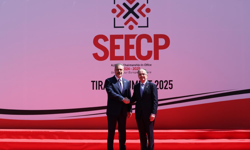 Dışişleri Bakanı Hakan Fidan, Cumhurbaşkanı Recep Tayyip Erdoğan’ı temsilen, Arnavutluk’un başkenti Tiran’da düzenlenen Güneydoğu Avrupa İşbirliği Süreci (GDAÜ) Devlet ve Hükümet Başkanları Zirvesi’ne katıldı. Bakan Fidan, zirve alanına gelişinde Arnavutluk Cumhurbaşkanı Bajram Begaj tarafından karşılandı.