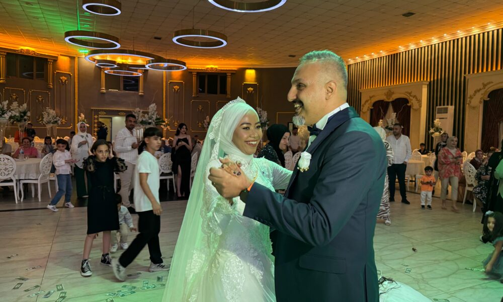 Türk örf ve geleneklerine göre düğünlerini yaptıklarını belirten Burak Kanat, “Aslen Diyarbakırlıyım, Mersin’de yaşıyorum. Mersin’de bir firmada tekniker pozisyonunda çalışmaktayım. 2,5 yıl önce ben yazılım anlamında çalışmalar yapıyordum. Yabancı bir web site için İngilizce dil eğitimi kursu uygulaması üzerinde orada çalıştık, İngilizce konuşuyorduk. Sonrasında aramızda bir kıvılcım oldu. Birbirimizi tanımak istedik. 2,5 yıl sonrasında bugüne nasip oldu. Kendisi orada hemşirelik pozisyonunda çalışmaktaydı. Sonrasında Türkiye’ye gelmek istedi. Biz bu vesileyle tanıştık. Aileler birbirini tanıdı. Tanışmalardan sonra istemeler oldu. Mesafeler çok uzak olduğu için online üzerinden denedik. Daha sonrasında her iki aile de tamam dedikten sonra bize de bugün nasip oldu” dedi.
