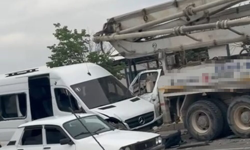 • Diyarbakır'da cip, beton pompa aracı ve minibüsün karıştığı zincirleme kazada 11 kişi yaralandı. Fotoğraf: Diyarbakır, (DHA)