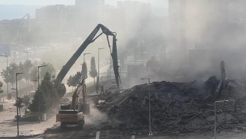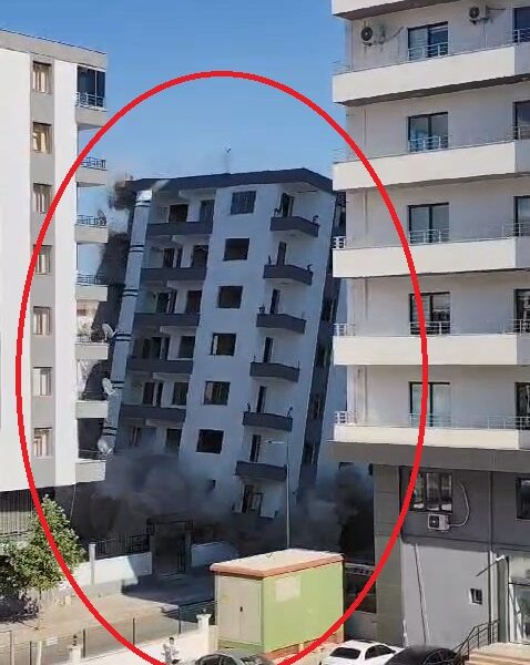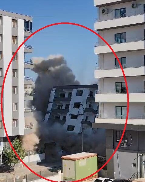 Kahramanmaraş merkezli 6 Şubat 2023’teki depremlerde ağır hasar aldığı için tahliye edilen Diyarbakır-Şanlıurfa karayolu yakınındaki 7 katlı bina, bugün kontrollü yıkım sırasında çöktü. Çökmeyle çevreyi toz bulutu kaplarken, çıkan toz yüzünden Diyarbakır-Şanlıurfa karayolunda seyir halindeki sürücüler trafikte zor anlar yaşadı. Çökme anları cep telefonu kamerasıyla kaydedilirken, binanın enkazını kaldırma çalışmaları başlatıldı.