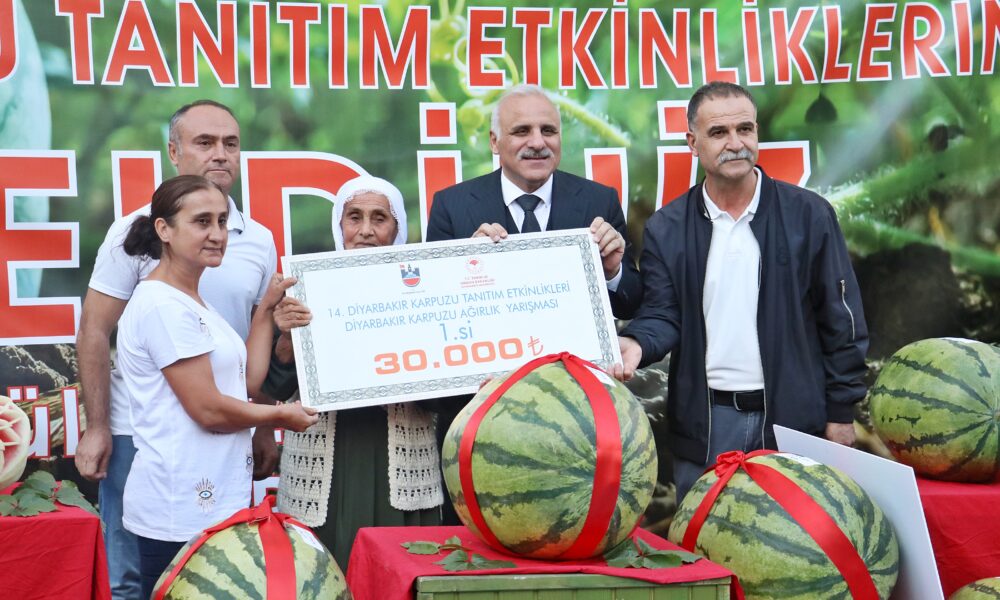 Diyarbakır’ın coğrafi işaretli ürünlerinden olan ve ağırlığıyla ünlü karpuzun hasadı yapıldı. Üreticiler, Diyarbakır Valiliği ile Tarım Orman ve Orman İl Müdürlüğü’nün organize ettiği ‘14’üncü Diyarbakır Karpuzu Tanıtım Etkinliği’nde karpuzlarını yarıştırdı. Tarım ve Orman İl Müdürlüğü bahçesinde düzenlene etkinlikte üreticilerin yetiştirdiği karpuzlar sergilendi. Etkinliğe Vali Murat Zorluoğlu, Dicle Üniversitesi Rektörü Prof. Dr. Kamuran Eronat, Tarım ve Orman İl Müdürü Mustafa Ertan Atalar, sivil toplum kuruluşları temsilcileri ile çiftçiler ve aileleri katıldı. Çocuklar da karpuz yeme ve karpuz yuvarlama etkinlikleri gerçekleştirdi. Etkinlikte İkram Atlı’nın ürettiği 48 Kilo 700 gramlık karpuz, 1inci seçildi. Yarışmada Atlı’ya 30 bin TL, 48 kilo ile 2nci olan Adil Aydın’a 25 bin TL, 45 kilo 500 gramla 3üncü olan Mehmet Atlı’ya ise 20 bin TL para ödülü verildi.