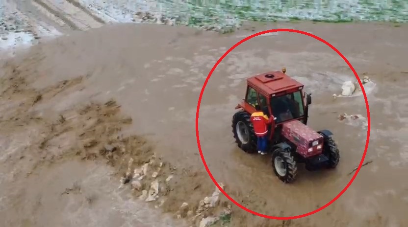 Diyarbakır’da araziler su altında kaldı; mahsur kalan kişi traktörle kurtarıldı