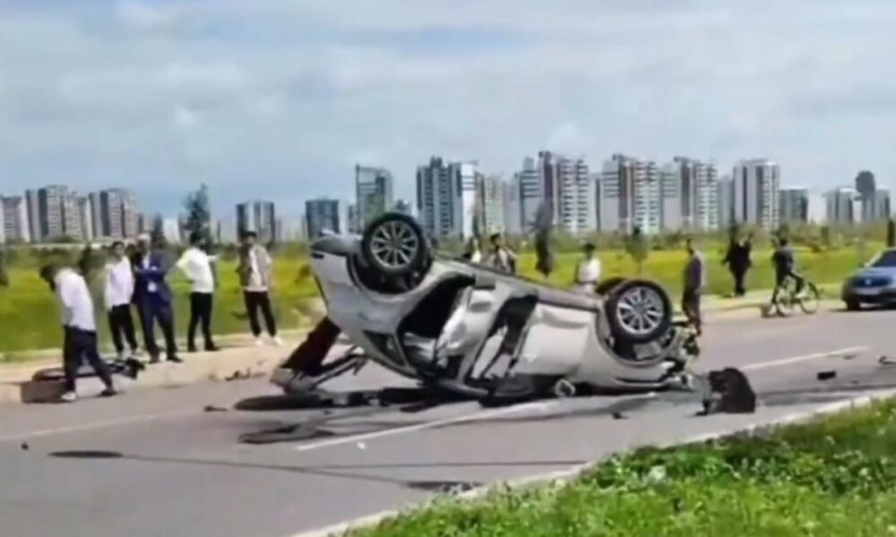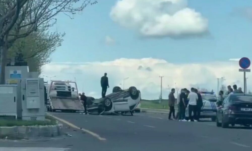 Diyarbakır’da çarpışan otomobillerden biri ters döndü; 4 yaralı