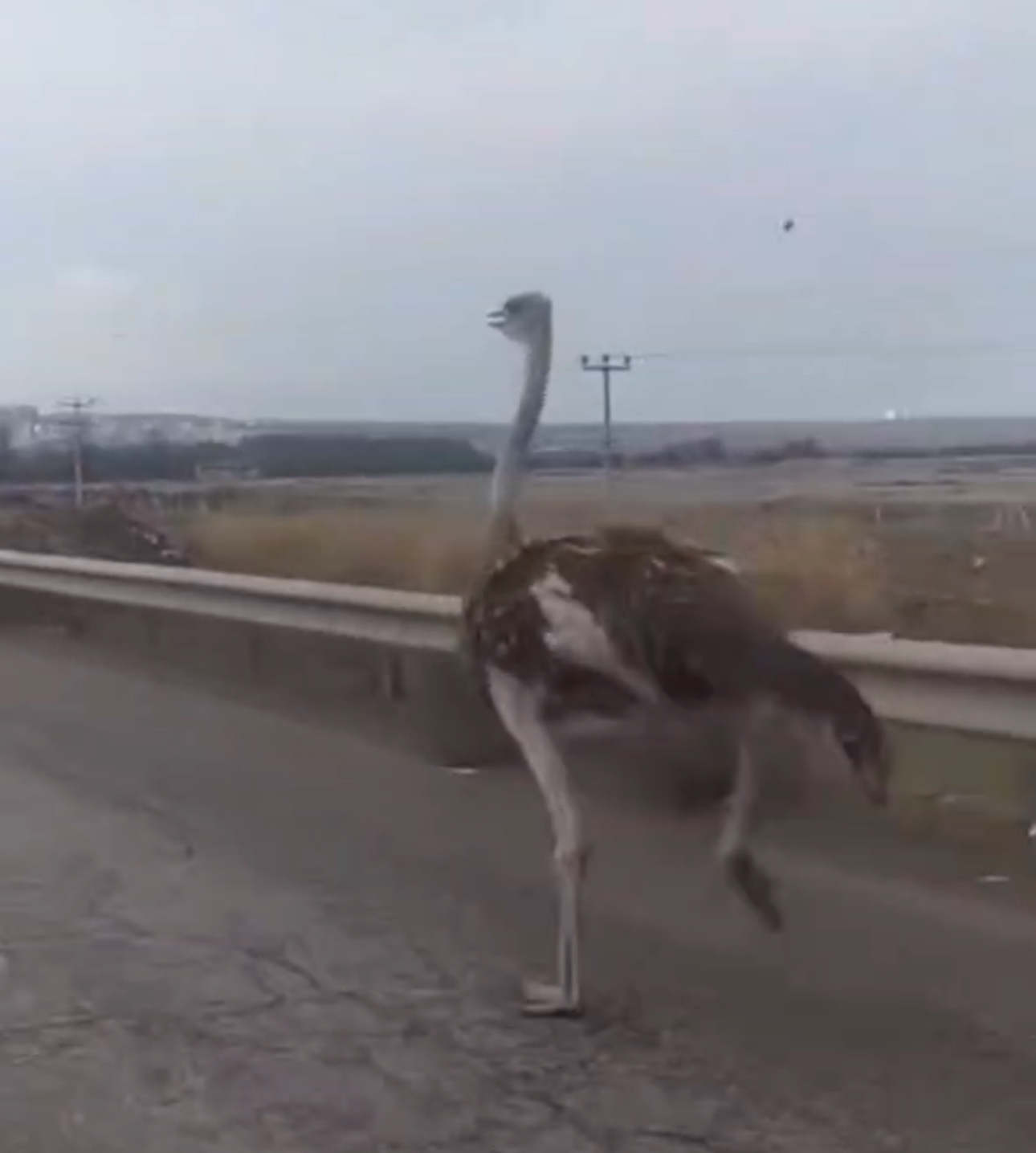 Olay, akşam saatlerinde Diyarbakır-Batman kara yolunun 10’uncu kilometresinde meydana geldi. Çiftlikten kaçan ve kara yolunda koşmaya başlayan deve kuşu, sürücülere zor anlar yaşattı. Sahibi A.Ö., deve kuşunu yakalamak için arabayla kovalarken, o anlar bir sürücü tarafından cep telefonu kamerasıyla görüntülendi. Deve kuşu, bir süre sonra gözlerden kayboldu.