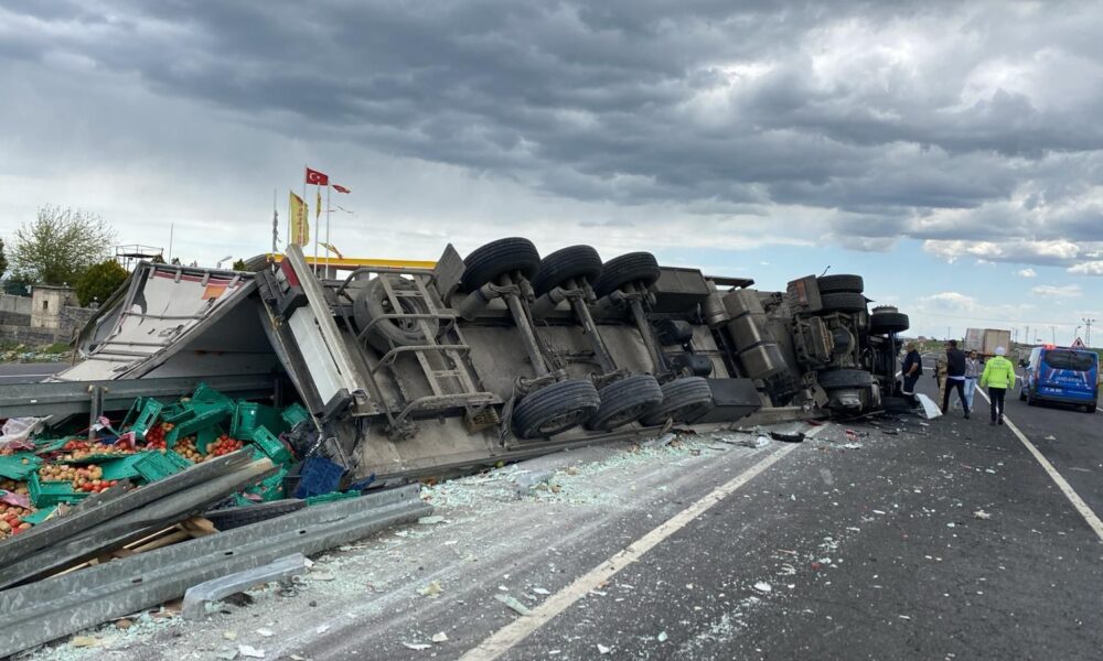 Diyarbakır’da, devrilen elma yüklü TIR’ın şoförü öldü