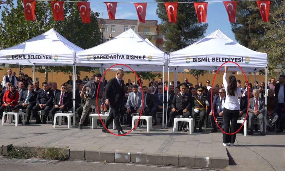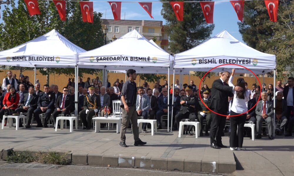 Cumhuriyet’in ilanının 102’nci yıl dönümü, tüm ülkede olduğu gibi Diyarbakır’ın Bismil ilçesinde de çeşitli etkinliklerle kutlandı. Bismil Kent Meydanı’nda düzenlenen törende duygusal anlar yaşandı. İstiklal Marşı’nı okuyan ortaokul öğrencisi Yağmur Çaybugün, heyecanlanıp duygualandı ve gözyaşlarına hakim olamadı. Durumu fark eden Kaymakam Recep Hasar, öğrencinin yanına gidip teselli etti. Töreni izleyenler tarafından alkışlanan o anlar, kameraya yansıdı.
