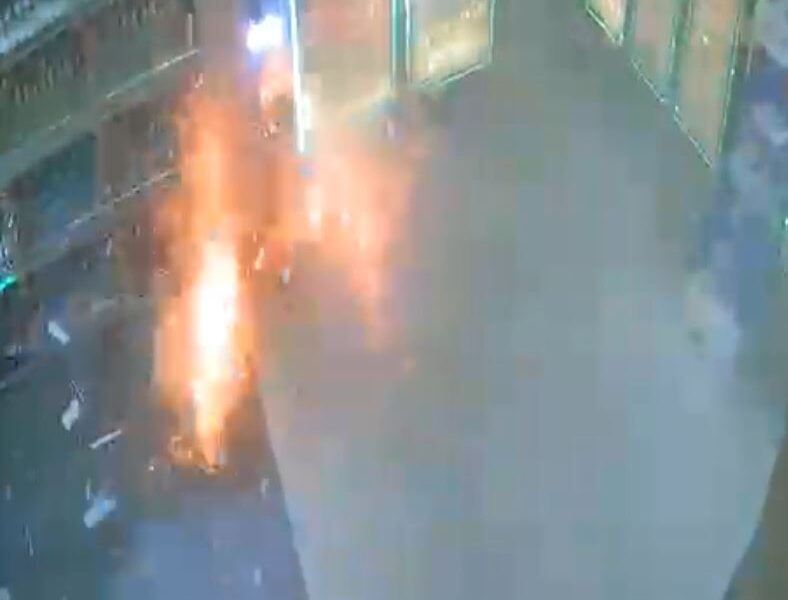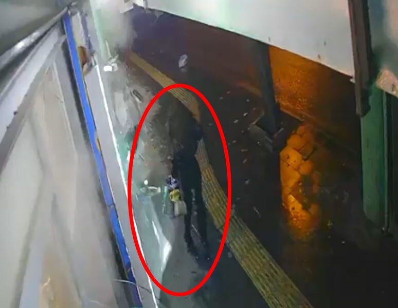 Öte yandan olay, güvenlik kamerasına yansıdı. Görüntülerde, yüzü kapalı şüphelinin kapısını açtığı marketten içeri patlayıcı madde atıp kaçtığı, bir süre sonra patlamanın meydana geldiği ve yangın çıktığı, iş yerinin yanından geçen bir kadının da patlama sırasında kırılan camlardan etkilenip, hızla bölgeden uzaklaştığı görüldü. Ayrıca, çevredekilerin marketin içine girip, bidonla su dökerek yangını söndürmeye çalıştığı anlar da kameraya yansıdı.