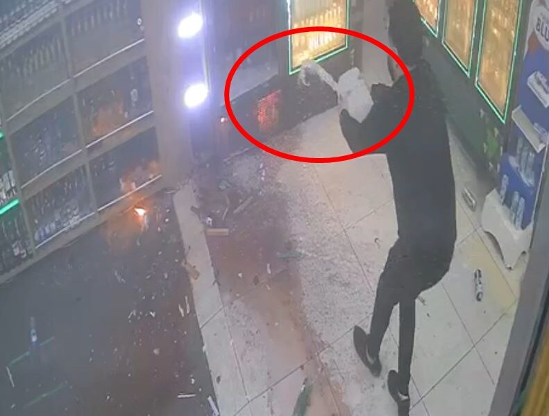 Öte yandan olay, güvenlik kamerasına yansıdı. Görüntülerde, yüzü kapalı şüphelinin kapısını açtığı marketten içeri patlayıcı madde atıp kaçtığı, bir süre sonra patlamanın meydana geldiği ve yangın çıktığı, iş yerinin yanından geçen bir kadının da patlama sırasında kırılan camlardan etkilenip, hızla bölgeden uzaklaştığı görüldü. Ayrıca, çevredekilerin marketin içine girip, bidonla su dökerek yangını söndürmeye çalıştığı anlar da kameraya yansıdı.