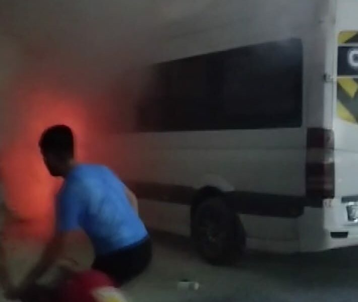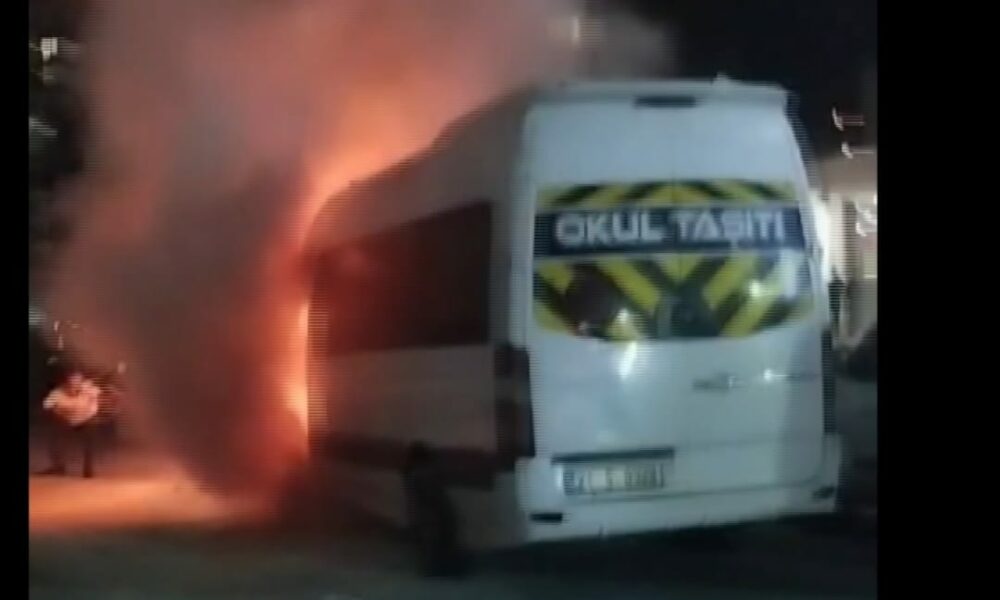 Diyarbakır’da park halindeki öğrenci servisi alev alev yandı; o anlar kamerada