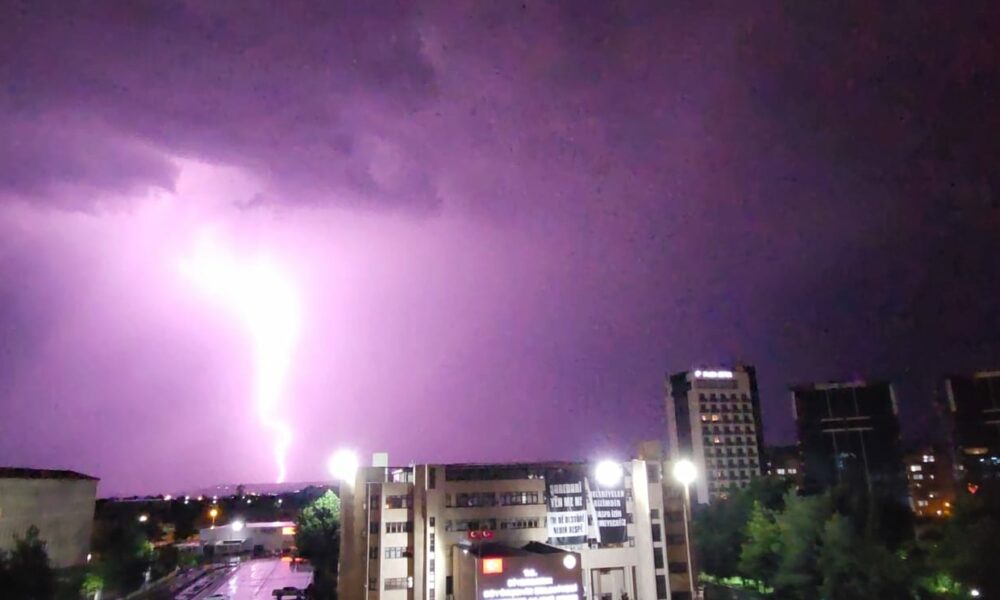 Diyarbakır’da şimşekler geceyi aydınlattı